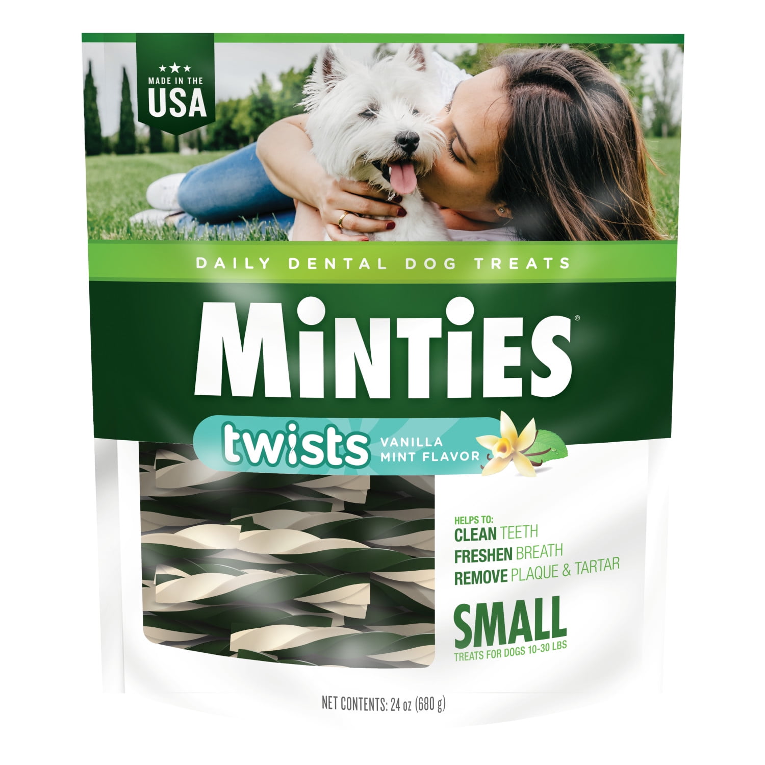 Minties Twists Dog Dental Bone Chews For Medium Large Dogs 30 Lbs Vanilla And Mint Flavor 24 Oz Walmart Com